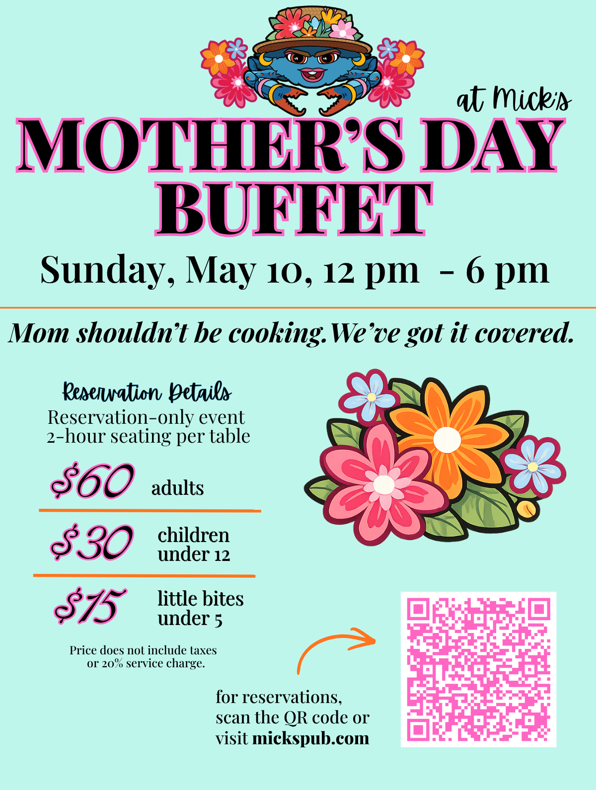 Whether you’re celebrating Mom, Grandma, or someone who’s like a mom to you—this is her day to kick back, relax, and be spoiled (the Mick’s way).